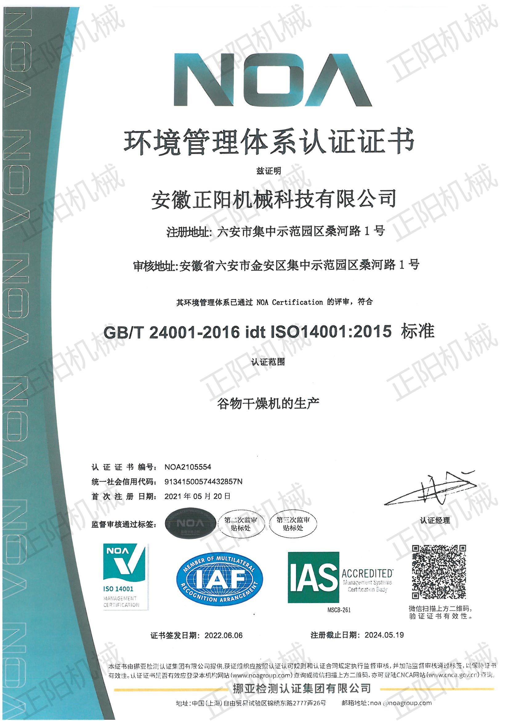 環(huán)境管理體系認(rèn)證證書